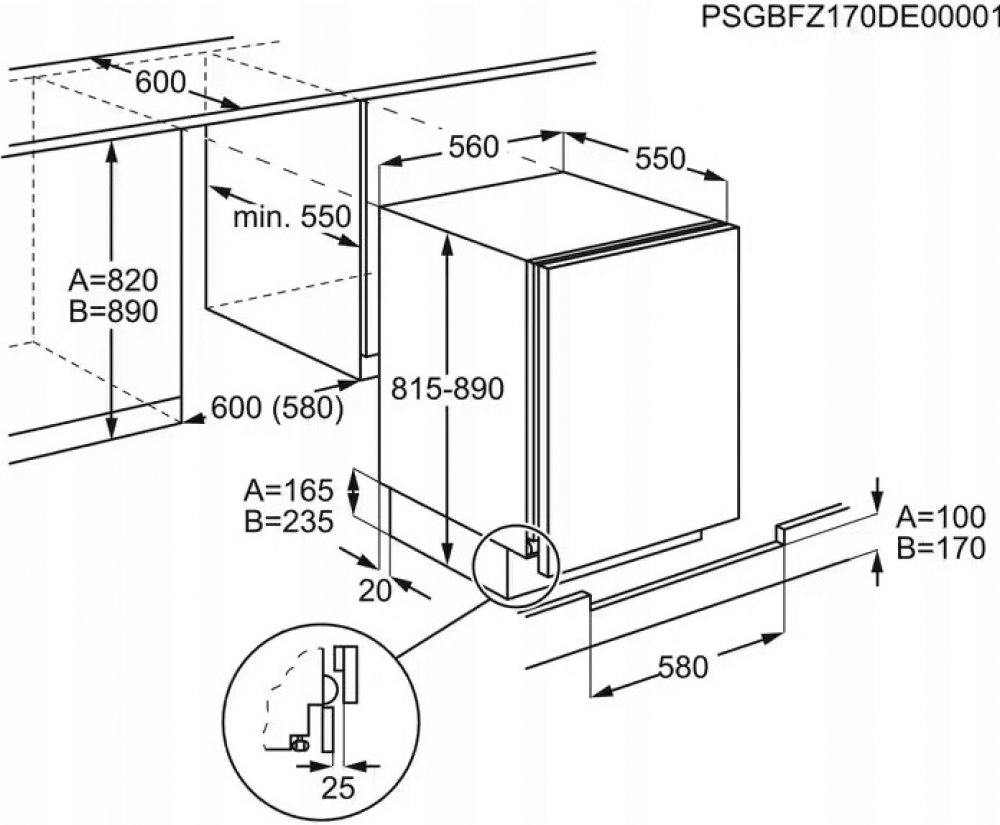 Vestavné rozměry (mm): 820 x 600 x 550