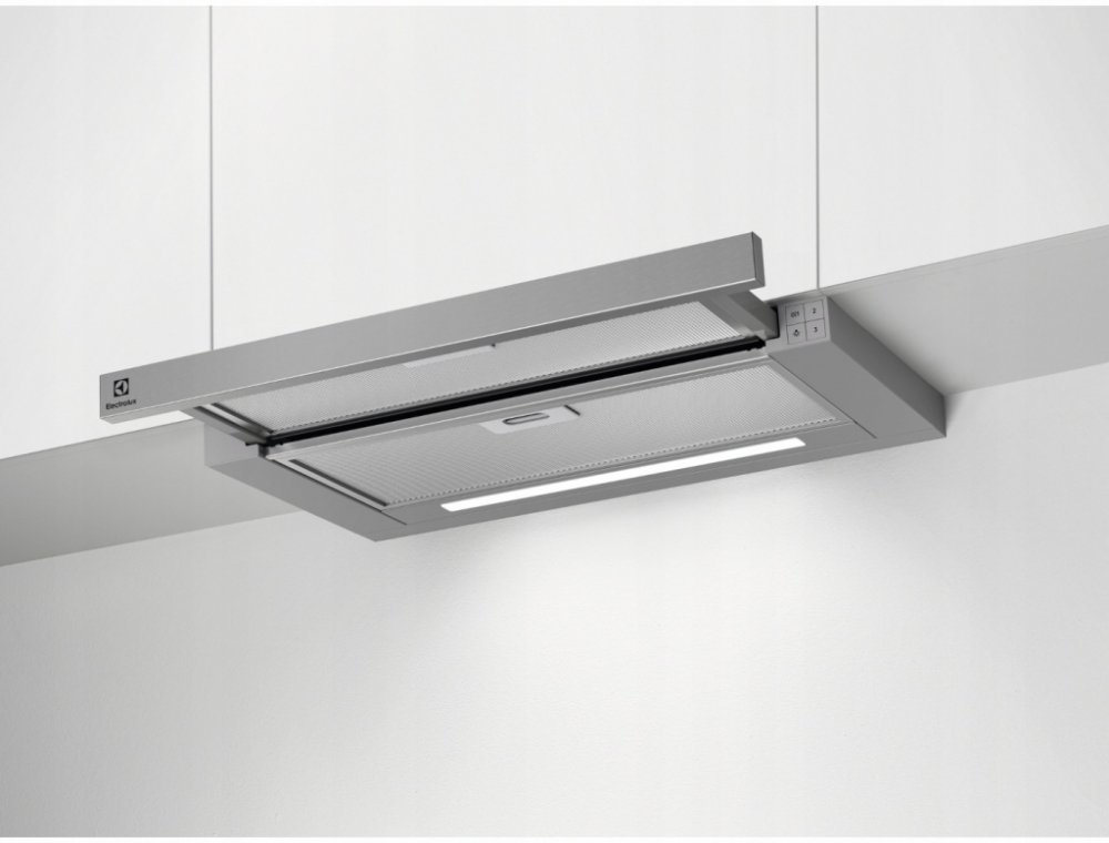 600 m3/hod. Electrolux vestavné nerezová ocel 59.8 cm mechanické 68 dB 3 náročné pracovní LED pásek A 150 mm 29.8 cm 33.9 cm hliníkové snadná
