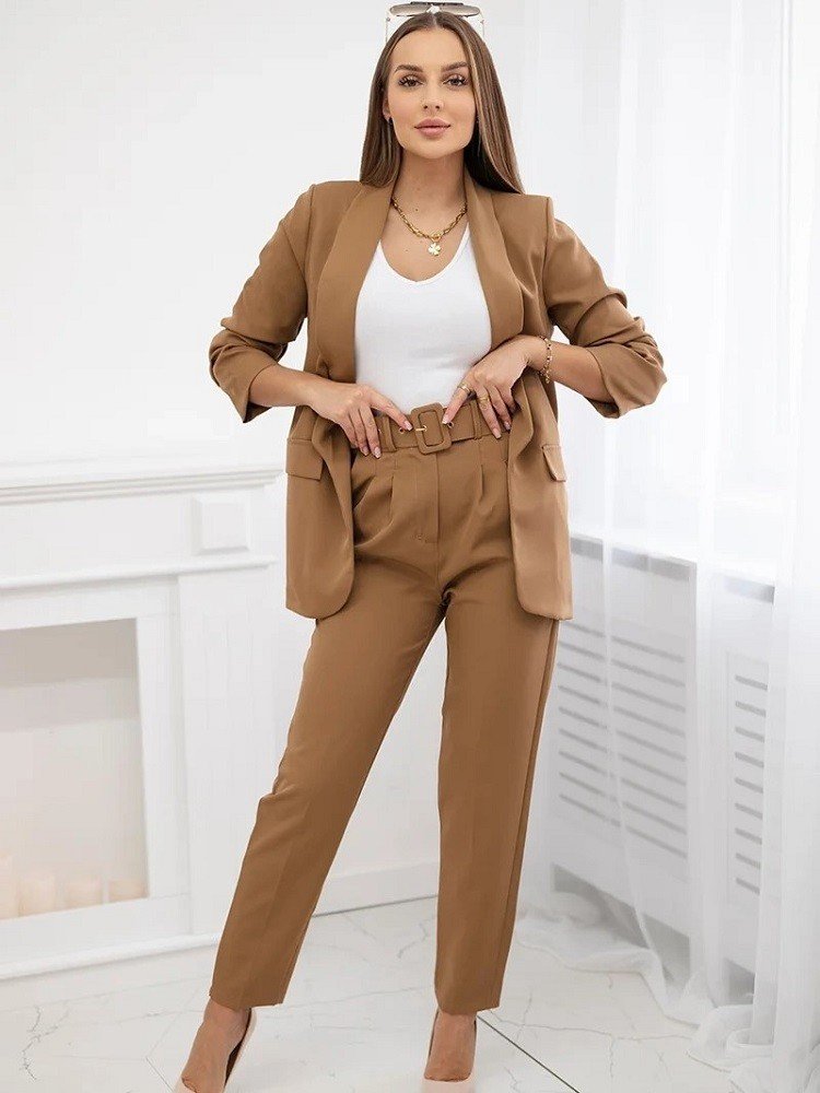 Elegantní kalhotový komplet 80172K Camel