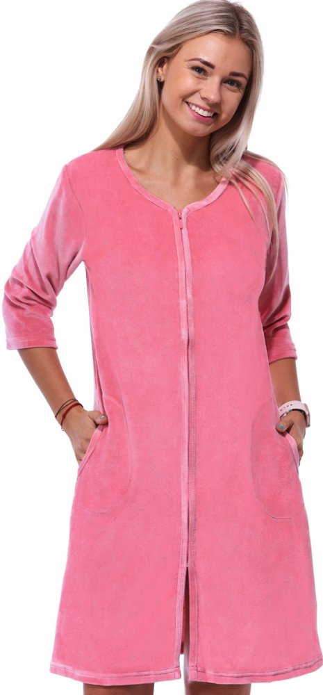 Elegantní kojící župan do porodnice na zip ze sametu 1TB0079 růžová