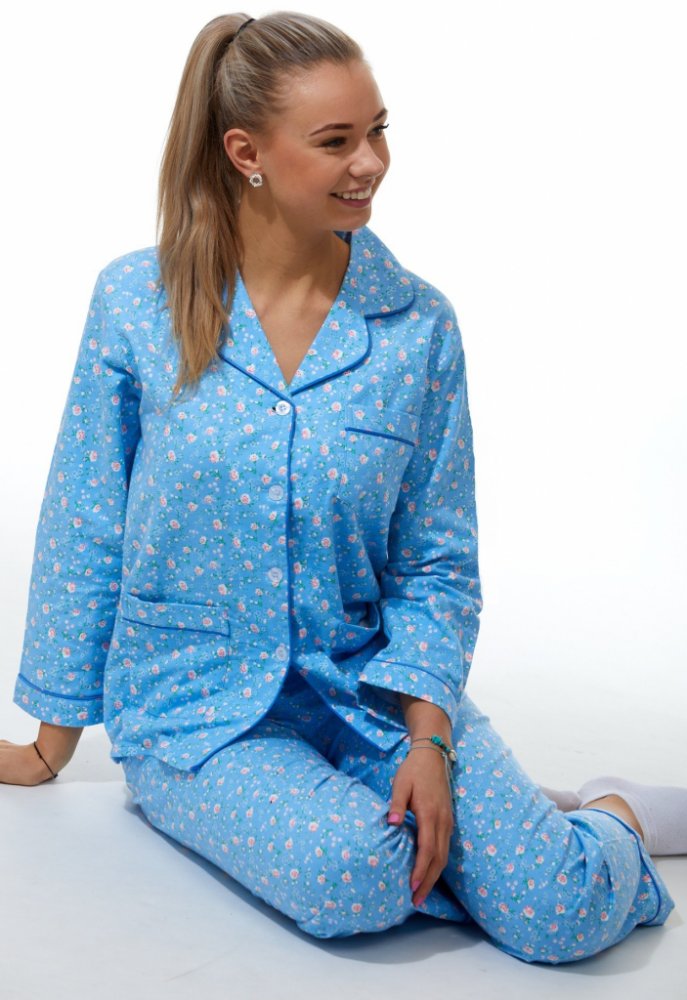 Elegantní pyžamo na kojení flanel 1DF0005 modrá