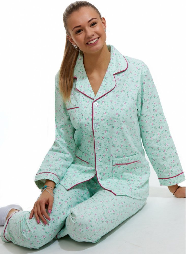 Luxusní pyžamo dámské na kojení z teplého flanelu z ušlechtilé bavlny