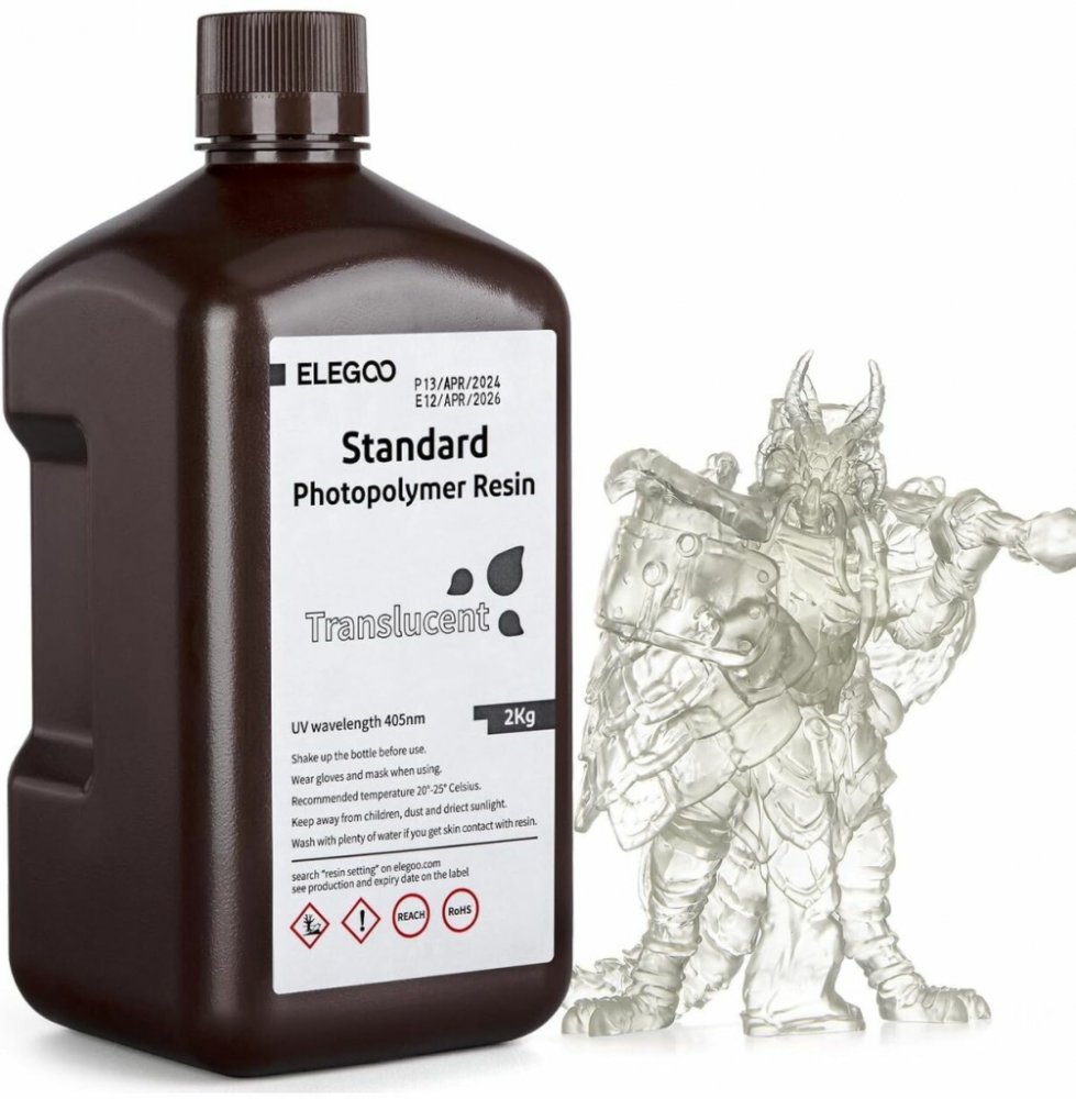 Resin Elegoo Standard, který vyžaduje UV světlo o vlnové délce 405 nm, je kompatibilní s většinou LCD/DLP tiskáren na trhu. Má širokou škálu využití, od miniatur pro stolní hry až po prototypy průmyslových dílů a komponentů. Všechny resiny značky Elegoo jsou baleny v plastových lahvích, které jsou pečlivě zabezpečeny bublinkovou fólií, díky níž se k vám resin dostane nepoškozený. Díky zdokonalenému složení mají resiny Elegoo jen velmi lehký zápach, který není štiplavý či nepříjemný. Pro delší a častější tisk však stále platí, že je nejlepší tiskárnu provozovat v separátní, dobře větrané místnosti.