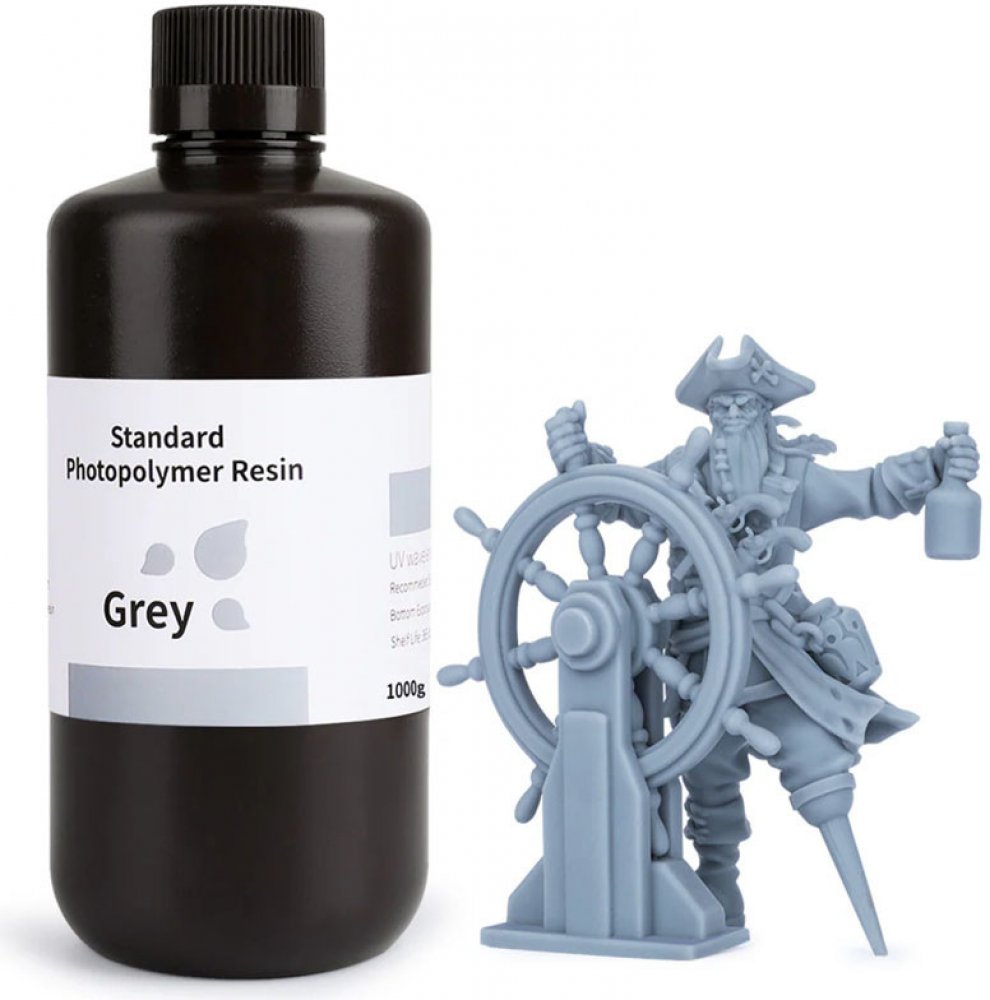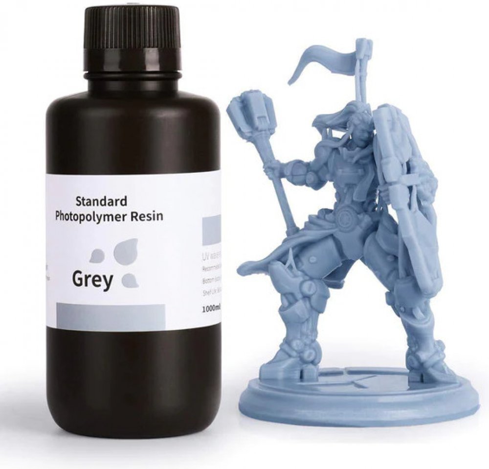Standardní fotopolymerový resin (pryskyřice) šedé barvy od značky Elegoo je ideálním tiskovým materiálem zejména pro LCD 3D tiskárny, které k vytvrzování modelů používají zdroj UV světla. Škála použití sahá od miniatur stolních her až po průmyslové díly a komponenty. Lze jej také použít k tisku 3D CAD návrhů, které se tak dostanou od nápadu k realitě. Je speciálně navržen tak, aby snižoval objemové smršťování během procesu vytvrzování světlem, což zajišťuje vysoce přesné vytištěné modely s hladkým povrchem. Resin je navržen tak, aby výrazně zkrátil dobu tisku díky své vynikající tekutosti. Zároveň jeho vynikající stabilita a přiměřená tvrdost zaručují bezproblémový a úspěšný tisk. Díky obsahu vysoce kvalitních pigmentů a fotoiniciátorů vytvářejí tiskové modely z resinu mimořádně živé a ohromující barevné efekty, téměř jako umělecké dílo. Vlnová délka vytvrzování je standardních 405 nm. Produkt je dodáván v lahvi obsahující 1 kg resinu.