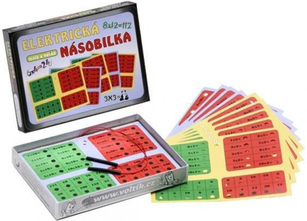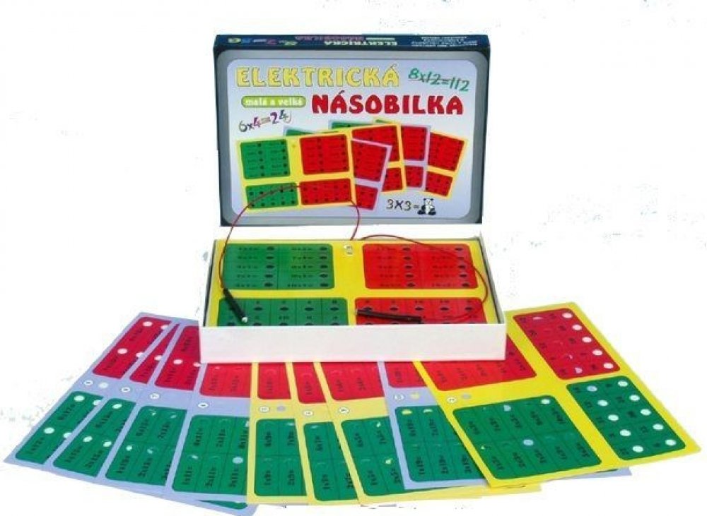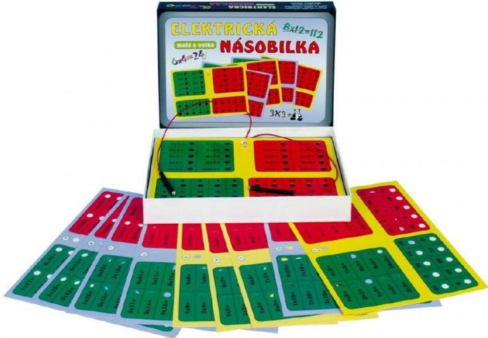 Didaktická hračka, která umožňuje samozkoušení vědomostí malé i velké násobilky. Zvolíte libovolný příklad, jeden kontakt přiložíte k příkladu a druhý k správnému výsledku. V případě správného výsledku se rozsvítí dioda. Obsahuje všech 200 příkladů malé i velké násobilky na 10 výměnných listech.