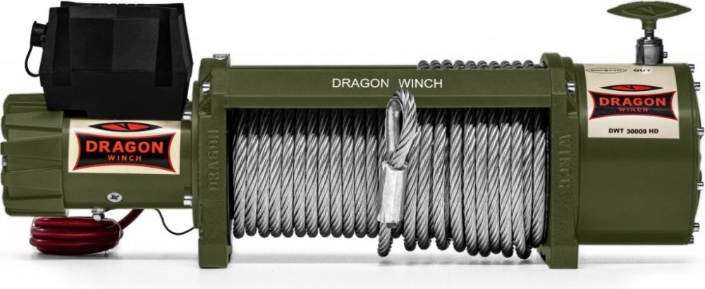 Naviják Dragon Winch Truck DWT 30 000 24V ocelové lanoNaviják Dragon Winch Truck DWT 30 000 je speciálně navržen pro použití na speciálních vozidlech, odtahových vozech a užitkových automobilech. Nabízí napětí 24V a disponuje motorem o výkonu 10,5HP. Maximální tažná síla navijáku dosahuje 13605kg, což je ideální pro těžké záchranné a přepravní operace. Převodovka je třístupňová planetová s redukcí 463:1 a naviják je vybaven dynamickou brzdou, která zajišťuje bezpečnost při manipulaci.Naviják je dodáván s ocelovým lanem o délce 30m a celý set má hmotnost 94kg. Rozměry navijáku jsou 745mmx217mmx271mm a rozteč montážních šroubů je 365mmx114mm nebo 365mmx164mm. Tento naviják je robustní a spolehlivý, což ho činí vhodným pro nejnáročnější pracovní podmínky.Rychlost navíjení lana závisí na zatížení. Při žádném zatížení je rychlost navíjení 2,62m/min, při zatížení 3400kg je rychlost 2,22m/min, při 6800kg je to 1,8m/min a při maximálním zatížení 13605kg je rychlost navíjení 1,0m/min. Spotřeba proudu závisí na zatížení – při napětí 24V je při žádném zatížení spotřeba 45A, při 3400kg je to 152A, při 6800kg je to 313A a při maximálním zatížení 414A.Tažná síla navijáku závisí také na vrstvě lana na bubnu. Při první vrstvě lana je maximální tažná síla 13605kg, při druhé vrstvě je to 10830kg a při třetí vrstvě 9550kg. Délka lana na bubnu se mění podle vrstvy – při první vrstvě je to 8,6m, při druhé vrstvě 18,8m a při třetí vrstvě maximálních 30m. Tento naviják nabízí výjimečný výkon a kvalitu při práci s těžkými břemeny.