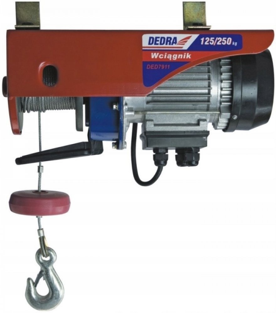 Elektrický naviják DED7914 je poháněn jednofázovým elektromotorem o výkonu 1000 W. Zařízení umožňuje zvednout náklad do výšky 6 metrů při maximálním zatížení 500 kg nebo 12 metrů při 250 kg. Pracovním prvkem je silné lano vyrobené z ocelového drátu. Naviják má ovládací konzolu, na které je umístěn automatický vypínač navíjení lana. Stroj je solidně vyrobený, odolný a bezpečný při provozu. Naviják DEDRA najde použití v mechanických servisech, při stavbě a rekonstrukci domu.