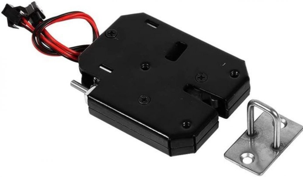Při odjištění dojde k vytlačení oka zámku. Možnost ručního ovládání. Vhodné k elektrickému ovládání dveří skříní, šuplíků apod. K otevření stačí proud 0,5A - ověřeno **Specifikace:**Napájení: 12V DCOdběr proudu: 0,5-2ARozměry zámku: 73x58x13mmDélka vodičů s konektorem: 20cm Součástí balení 1ks zámek, 1ks západka.Zámek není určen pro dlouhodobé ponechání v otevřeném stavu.Maximální doba otevření je do 10s. Při delším otevření může dojít k přehřátí a tím ke zničení cívky zámku.