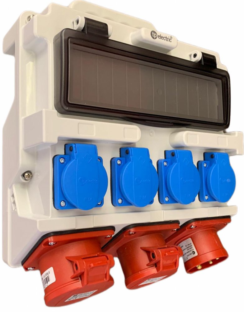 Rozvodnice je osazená: 4x zásuvka vestavná 230V/16A 1x zásuvka vestavná 32A 4 kolík 2x zásuvka vestavná 32A 5 kolík