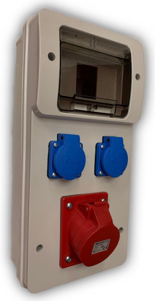 Rozvodnice je osazená: 2x zásuvka vestavná 230V/16A 1x zásuvka vestavná 32A 5 kolík