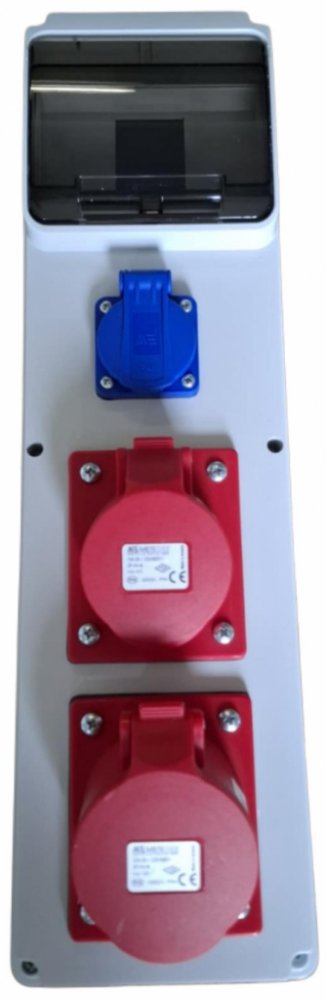 Rozvodnice je osazená: 1x zásuvka vestavná 230V/16A 2x zásuvka vestavná 16A 5 kolík