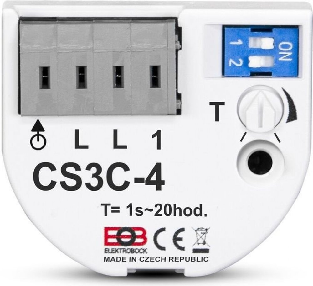 Časový spínač ELEKTROBOCK CS3C‑4 je kompaktní a výkonné zařízení určené k montáži pod běžný vypínač bez nutnosti nulového vodiče. Je ideální pro spínání LED osvětlení a dalších spotřebičů od výkonu již 1 W, s maximálním zatížením 150 W pro odporovou a 150 VA pro indukční zátěž. Po stisknutí tlačítka dojde k okamžitému sepnutí zátěže, přičemž samotné časování začíná až po jeho uvolnění. Délku spíná...