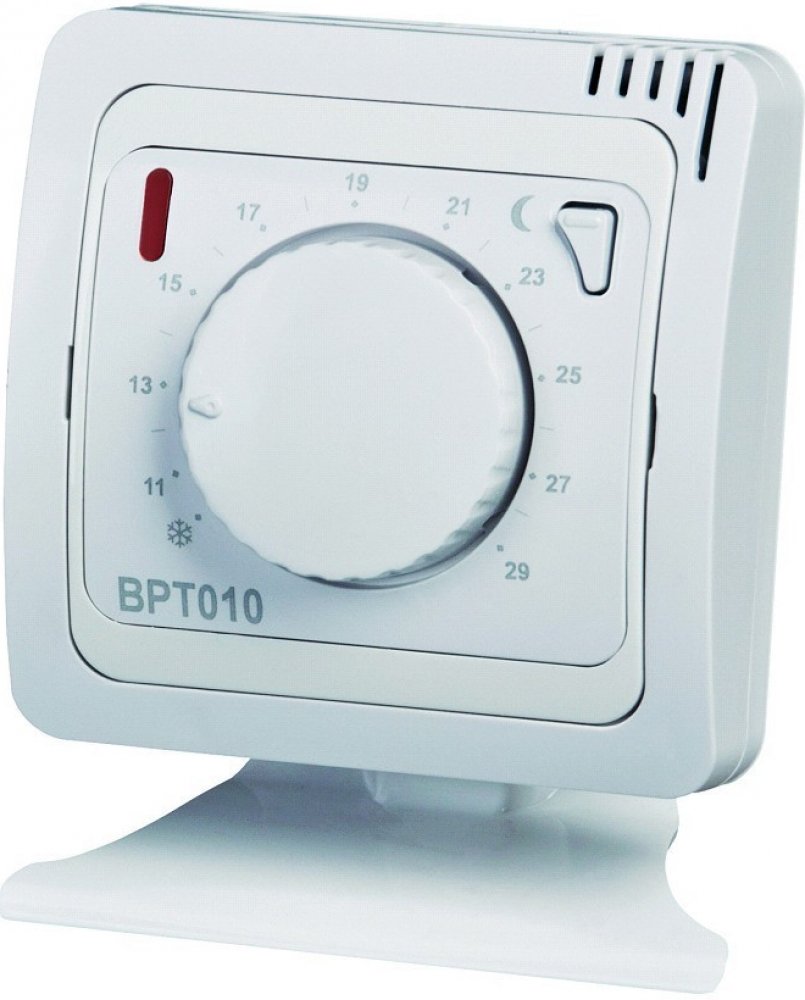 Bezdrátový termostat (vysílač), který podle požadované teploty v místnosti ovládá přijímací jednotku BT001, BT002 nebí BT003, která slíná připojené topné zařízení.