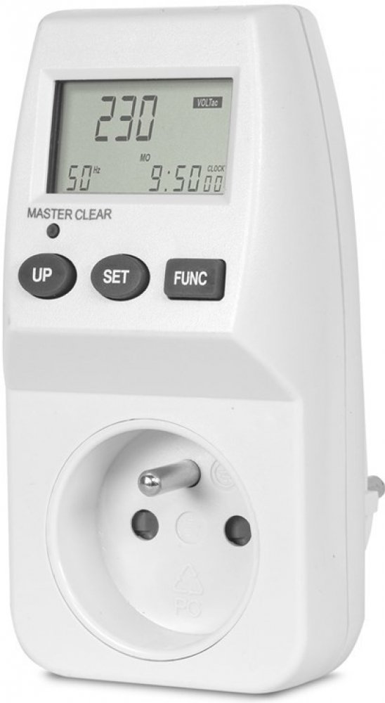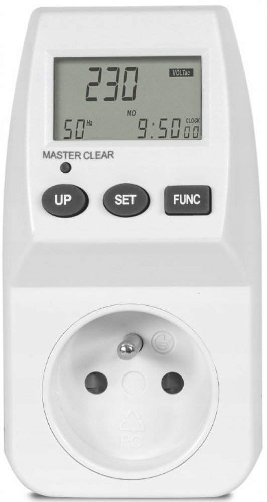 Zálohovací baterie (vyměnitelné) umožní uchování dat a nastavení po dobu delší jak 3 měsíce. Přesnost měření je +-1%. Zásuvka je vybavena dětskou pojistkou.