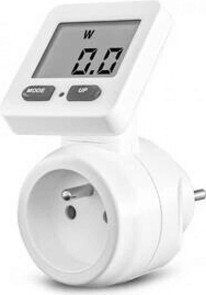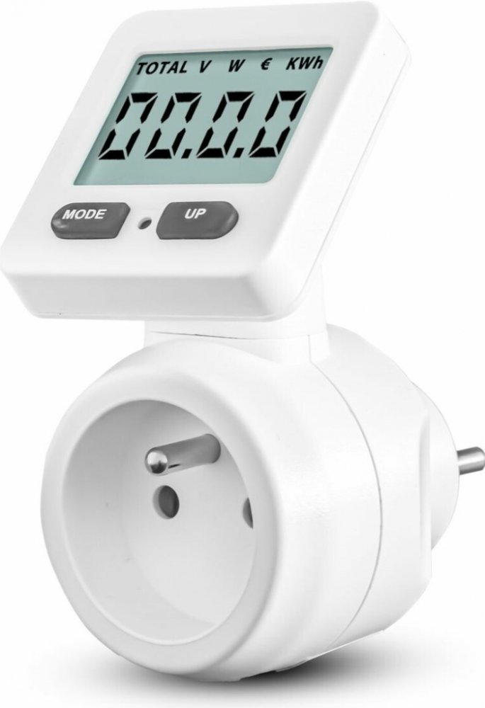 měřič spotřeby elektrické energie • 2" LED displej zobrazující stavové informace • síťové napájení 230 V / 50 Hz • maximální proud 16 A / 3 680 W • ukazatel spotřeby 0 až 9 999 kWh • zobrazení aktuálního času, napětí, frekvence sítě, proudu, příkonu spotřebiče, účiníku a spotřebu el. energie • rozsah měřeného příkonu 2 až 3 680 W