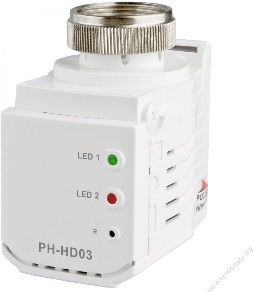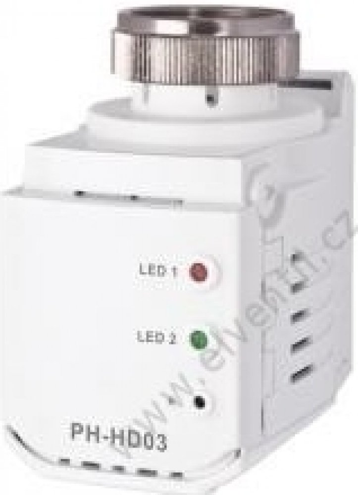 Elektrobock PH-HD03 bezdrátová digit. hlavice bez LCD|n||n||n||n|Popis produktu|n||n|Vlastnosti bezdrátové digitální hlavice PH-HD03:|n||n|je prvek ovládající ventil na radiátorovém topení. Hlavice je ovládána řídicí jednotkou PH-BHD, která snímá aktuální teplotu a podle rozdílu s požadovanou teplotou posílá povel hlavici k zavření nebo otevření ventilu.