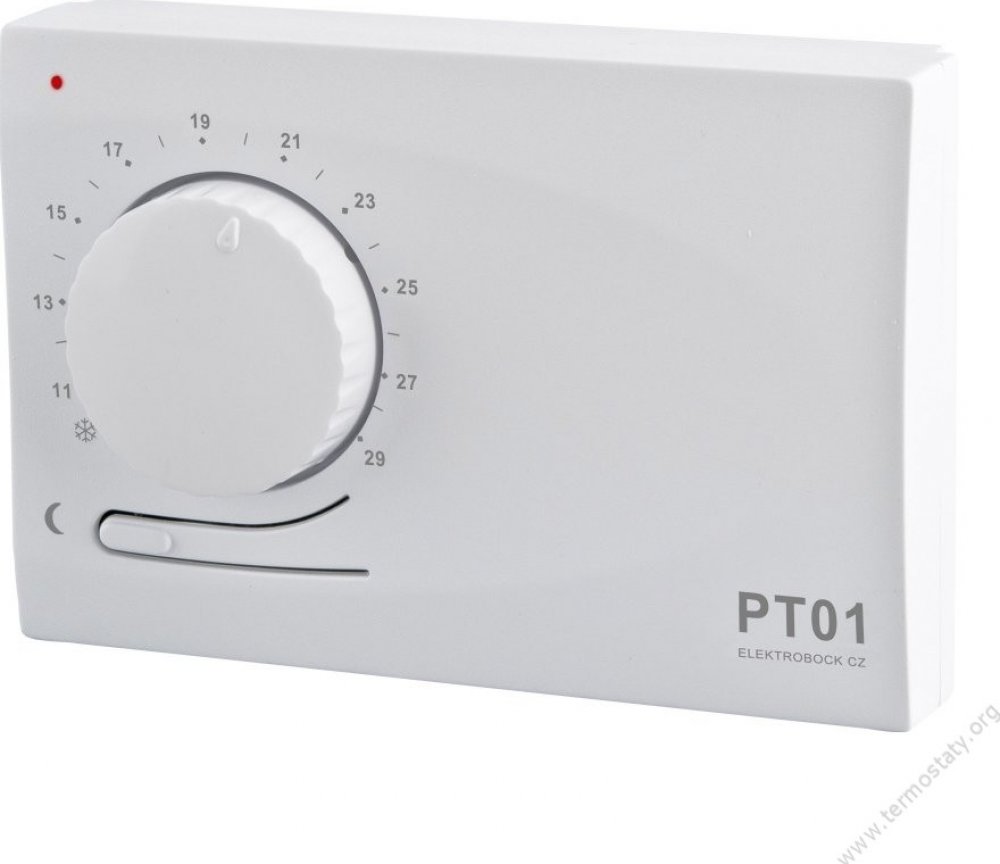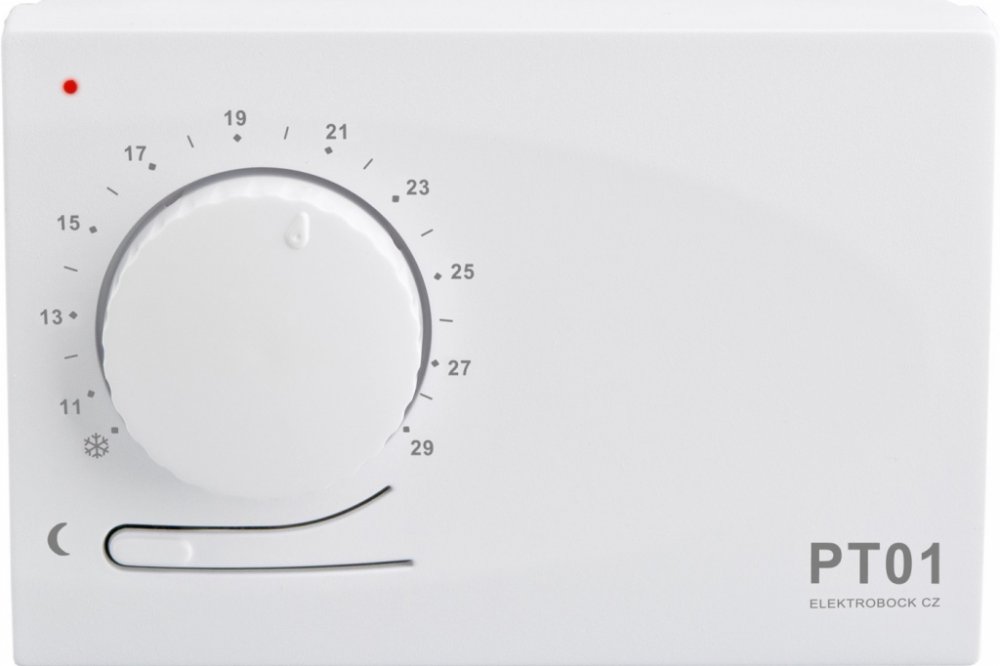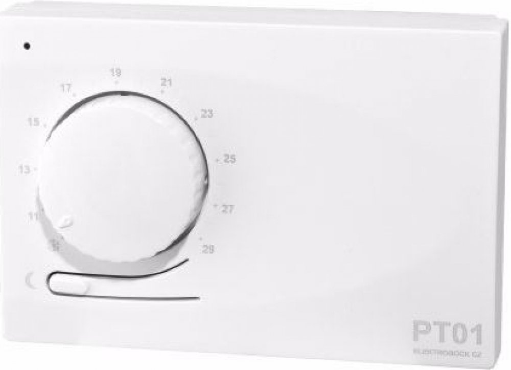 je jednoduchý elektronický prostorový termostat pro manuální regulaci vytápění a s možností automatického nočního útlumu teploty.