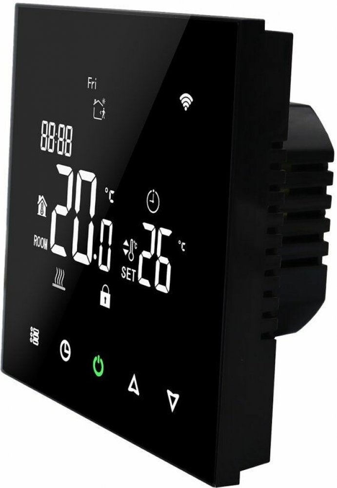 Termostat je určen pro spínání zdroje tepla (např. kotle) a obsahuje beznapěťový výstup max. 10A.