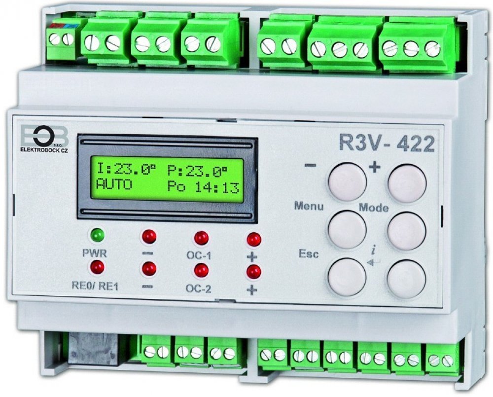 Dvou-okruhový regulátor tří/ čtyřcestných ventilů s výběrem druhu regulace pro každý okruh. Umožňuje spínat kotel a příslušná čerpadla a řídit dobíjení AKU nádrže.