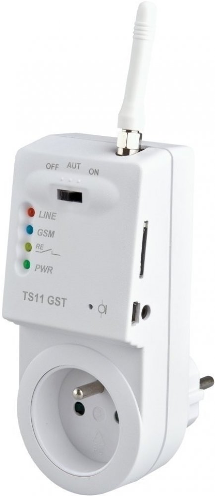 TS11 GST slouží pro ovládání spotřebičů pomocí krátkých SMS nebo prozvoněním z mobilního telefonu. GSM zásuvka je vybavena vstupem pro teplotní čidlo nebo bezpotenciální kontakt. Tento analogový vstup rozšiřuje možnosti použití zásuvky jak pro regulaci teploty, tak pro alarmové stavy. Součástí GSM zásuvky je navíc integrovaný mikrofon pro odposlech. Součástí balení je teplotní čidlo, které umožňuje automatické hlídání minimální a maximální teploty