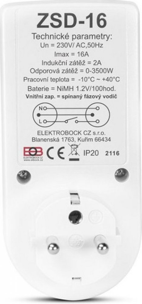 ELEKTROBOCK ZSD-16 digitální spínací zásuvka 0145