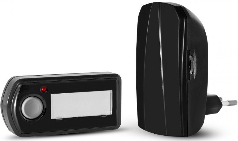 * Set obsahuje domácí zvonek (přijímač) do sítě 230V a 1x tlačítko-vysílač na baterii 12V