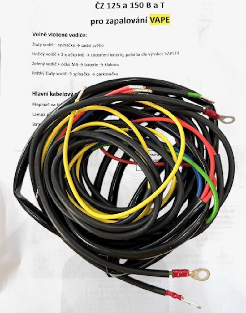 Kompletní kabeláž na motocykl ČZ B/T vybavený zapalováním VAPE.