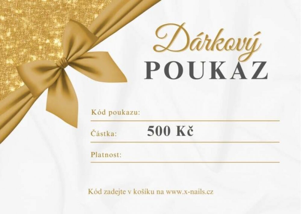 Potěšte své blízké krásným dárkem – elektronickým dárkovým poukazem na nákup nehtové kosmetiky. Vyberte si hodnotu 500 Kč, 1 000 Kč nebo 2 000 Kč a darujte možnost nakoupit vše potřebné pro dokonalou péči o nehty a krásné ruce. S naším dárkovým poukazem jim darujete možnost splnit si přání a vybrat si kvalitní produkty pro péči o nehty a ruce. ...