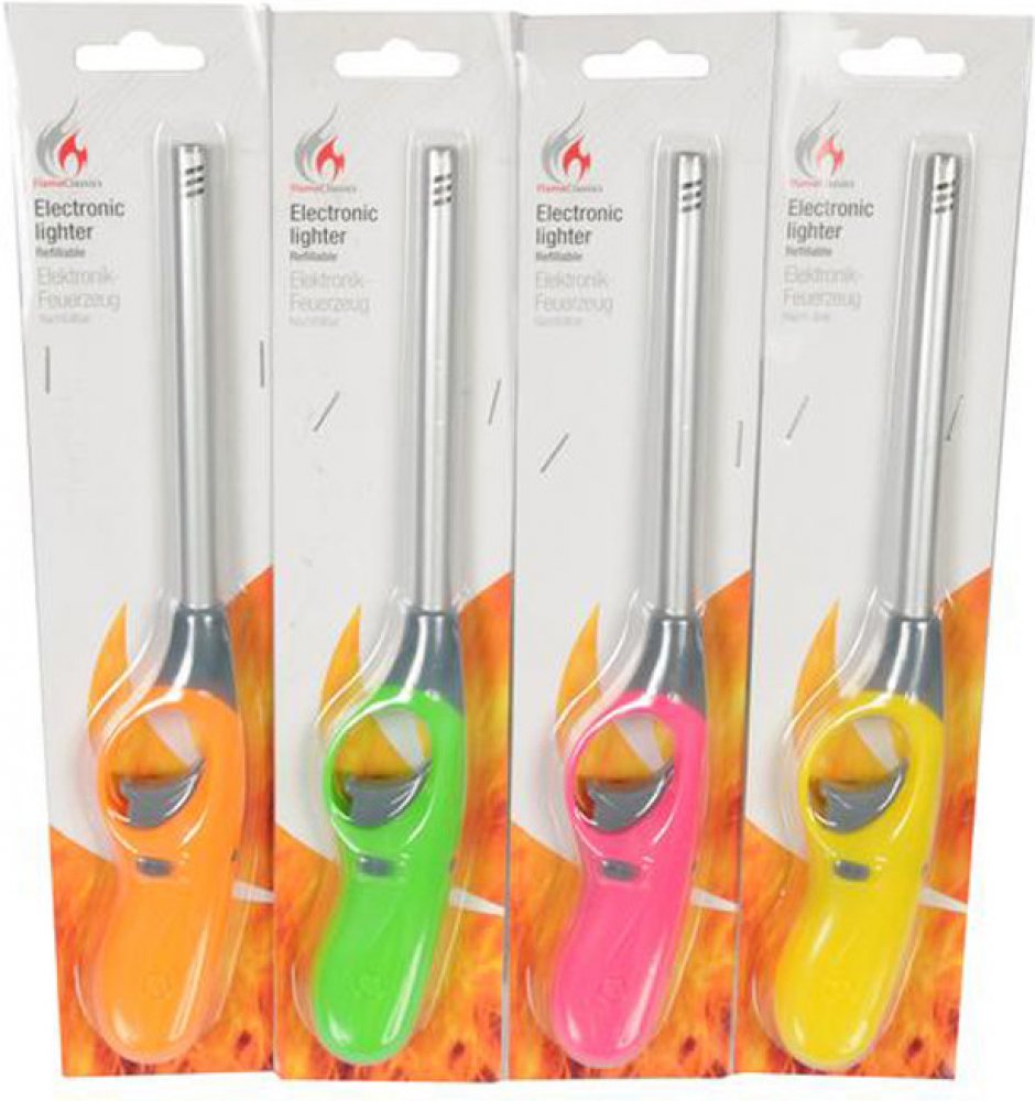 Při použití držte zapalovač směrem od obličeje a oděvu. Nepoužívejte k zapalování cigaret, doutníků nebo dýmek. Ujistěte se, že po použití plamen zhasl. Nikdy nevystavujte zapalovač teplotám nad 50 stupňů Celsia a nenechávejte ho ležet na přímém slunci. Zapalovač neprorážejte a nevhazujte do ohně. Při používání tohoto výrobku dodržujte všechny pokyny a upozornění poskytované výrobcem grilu nebo jiného zařízení. Neponechávejte hořet po dobu delší než 30 s. Obsahuje hořlavý plyn pod tlakem. Assort barev. Výška zapalovače - 25 cm.