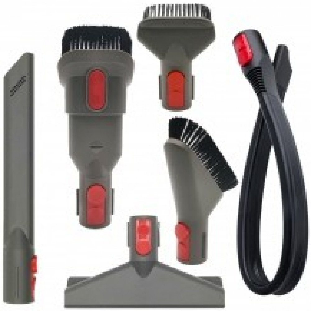 Kartáče a hubice pro vysavač DYSON V15 Detect Absolute 2023 Gold s flexi 57cm hubicí 6ksSada mini hubic a kartáče pro vysavače DYSON V7, DYSON V8, DYSON V10, DYSON V11, DYSON V12, DYSON V15 obsahuje prachový kartáč oválný, štětinový kartáč, plochou hubici s kartáčkem, hubici na matrace, štěrbinovou 24cm hubicí a flexi štěrbinovou 57cm hubici na radiátory.