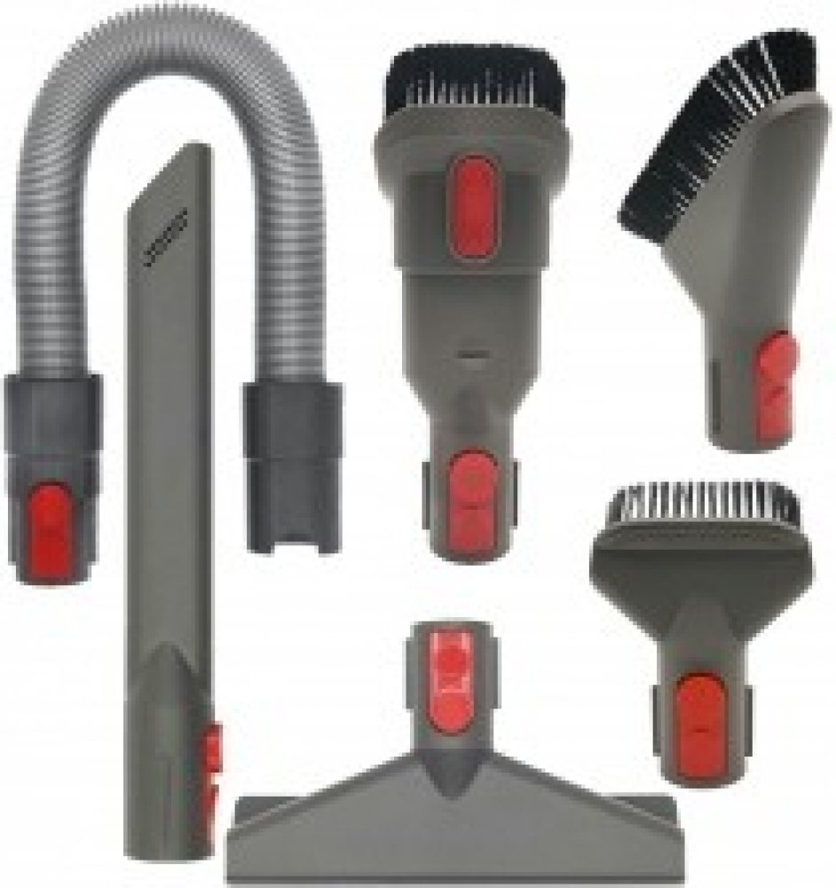 Hubice a kartáče pro vysavač DYSON V15 Detect Absolute sada s flexi hadicí až 140cm 6ksSada příslušenství pro vysavače DYSON V7, DYSON V8, DYSON V10, DYSON V11, DYSON V12, DYSON V15 obsahuje flexi hadici roztažitelnou, prachový kartáč oválný, štětinový kartáč, plochou hubici s kartáčkem, hubici na matrace a štěrbinovou 24cm hubicí