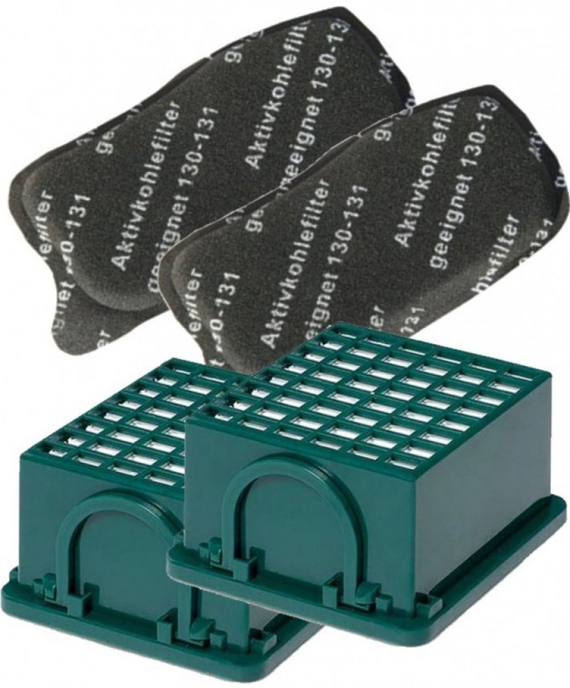Sada HEPA filtrů pro VORWERK VK 130, VK 131, VK 132 Kobold s filtry 2+2ksSada HEPA filtry a aktivní uhlíkové filtry pro vysavače VORWERK VK 130 Kobold, VORWERK VK 131 Kobold, VORWERK VK 132 Kobold, VORWERK Folleto VK130, VORWERK Folleto VK131, VORWERK Folleto VK132.