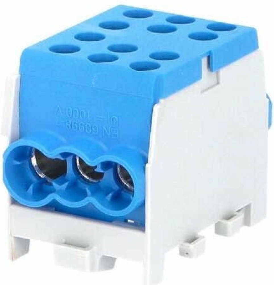 Univerzální rozbočovací (smyčkovací) svorkovnice HLAK typ M2 mohou být použity v rozvaděčích nízkého napětí či v dalších aplikacích, kde potřebujeme připojit vstupní kabel a kabel(y) výstupní (smyčkování) a zároveň připojit k napájení přístroje osazeného uvnitř rozvaděče. Speciální povrchová úprava svorky umožňuje připojení jak měděných tak hliníkových vodičů. Svorky jsou určeny pro montáž na nosnou lištu (DIN) a jsou řaditelné do sebe. Hlavní přednosti: montáž na nosnou lištu Ui až 1000 V AC/DC (ČSN EN 60998-1 ed. 2) menší rozměry oproti klasickým rozbočovacím svorkám krytí IP20 připojení měděných i hliníkových vodičů řaditelné do sebe široká nabídka typů a provedení barevné odlišení fází, nulového a ochranného vodičeParametry Jmenovitý proud [A]: 125 Napětí Ui [V]: 1000 Krytí [IP kód]: IP20 Počet pólů svorky: 1-pól Max. připoj. průřez: 35 mm2 Barevné provedení pouzdra: modrá Počet přip. míst / 1.pól: 6 Rozsah připojitel. - 1.vstup: 4 - 35 mm2 Rozsah připojitel. - 2.vstup: 4 - 35 mm2 Rozsah připojitel. - 3.vstup: 2,5 - 25 mm2 Rozsah připojitel. - 4.vstup: 2,5 - 25 mm2 Rozsah připojitel. - 5.vstup: 2,5 - 25 mm2 Rozsah připojitel. - 6.vstup: 2,5 - 25 mm2 Vestavná šířka: 22 Mat. přip. vodičů (měď/hliník): Měď/hliník Určeno pro montáž: Na nosnou lištu