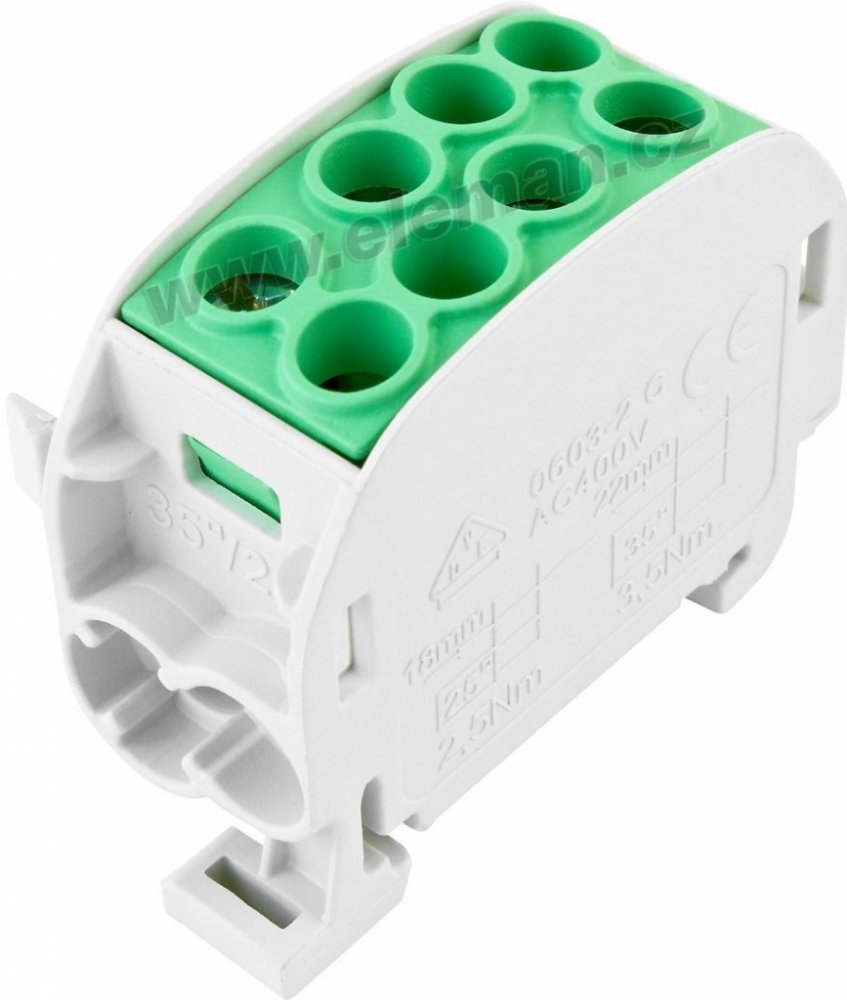 Svorkovnice rozbočovací HLAK 35//1 C PE, 125A, 1pól., CU, IP20, zelená, na DIN