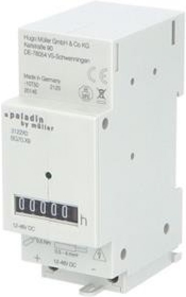 Počítadlo provozních hodin PALADIN 312270 (BG 70.29) - napětí 12-48V DC, bez krytu svorek, velikost číslic 4,4mm, kapacita hodin 99999, 2 modulové, montáž na DIN lištu, krytí IP50, barva šedá.Neodmyslitelným pomocníkem k hlídání pravidelných revizí a kontrol zejména průmyslových zařízení jsou počítadla provozních hodin PALADIN a ORBIS. Bezpečně načítají čas provozu zařízení a tím zajišťují delší životnost všech mechanických prvků. Instalují se přímo do panelu nebo na nosnou lištu 35 mm. Počítadla nelze vynulovat. Standardně jsou pro napětí: 230 V AC, 24 V AC a 12-48 V DC. Na vyžádání jsou dostupné i atypické varianty.