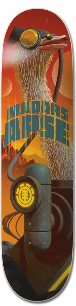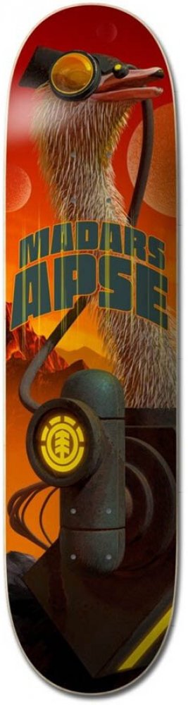 Nová skate doska od značky Element je špeciálne vytváraná návrhármi inšpirovanými poslednými trendmi art kultúry. Žiarivé farby spolu s nápaditým motívom tvoria dokonalý kúsok. Vlastnosti: materiál: 100% javor - 7 vrstvové drevo model: Future Nature Madars šírka: 8,5"
