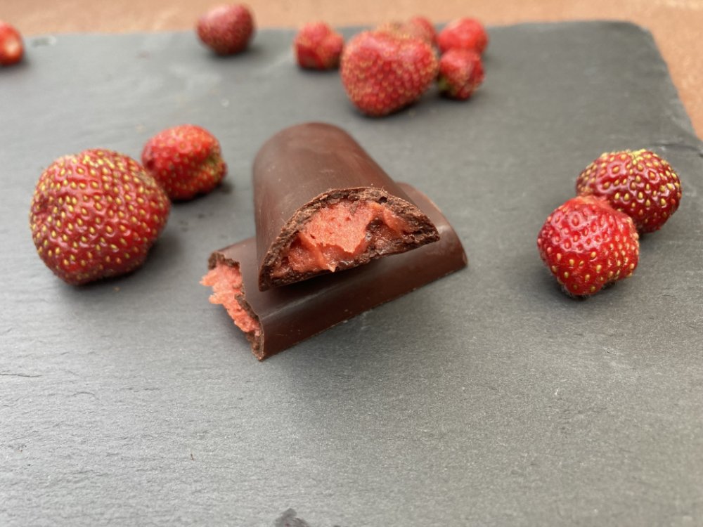 Složení: BIO kakaové boby, BIO kokosový cukr, jahody, BIO bambucké máslo, BIO kokosový olej, BIO rýžový olej