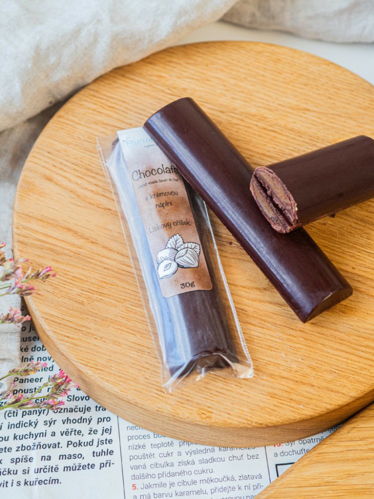 **Čokoláda s lísko-oříškovou krémovou náplní.**