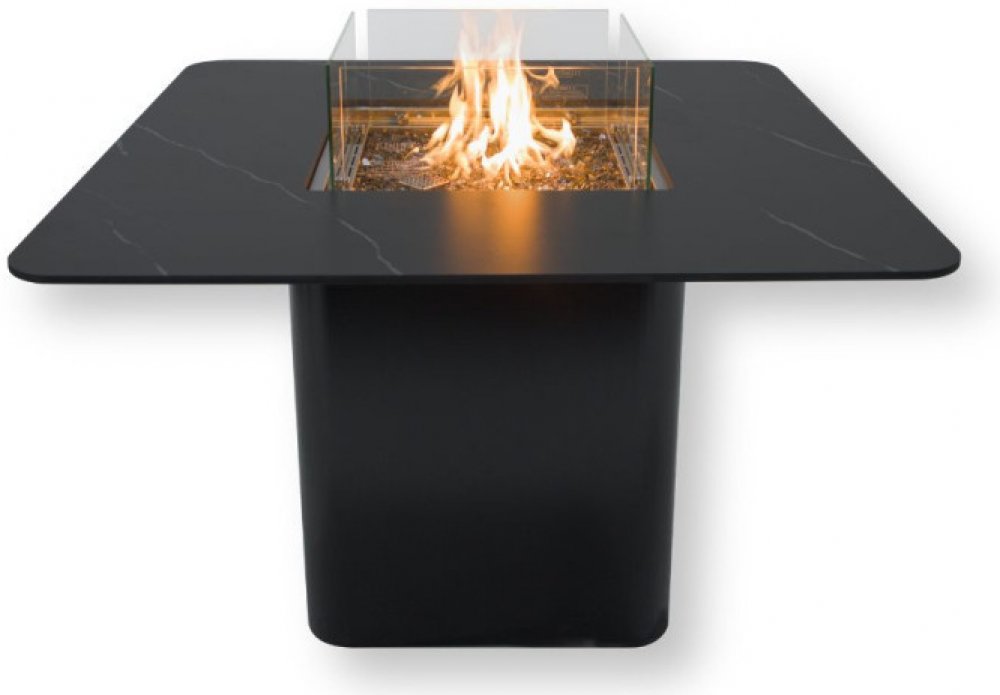 Stolní plochu tvoří vysoce pevná keramická deska, která je vyrobena nejmodernější technologií zapékání a tvoří ji 100% přírodního kamene bez chemických přísad. Je proipoevněno na ocelovém rámu a odolná mrazu i letnímu UV záření. Neabsorbuje žádné tekutiny, ani tuky a je velmi odolná oděru či poškrábání. Obsahem balení je i kryt topeniště ve stejném dekoru, který vytvoří rovnou plochu, pokud své topeniště nepoužíváte. Výplň topeniště tvoří takzvané FIRE GLASS - DEKORAČNÍ SKLO bronzové barvy, která dodá plameni punc jedinečnosti. Všechny naše stoly jsou plně certifikovány u nás i ve světě.