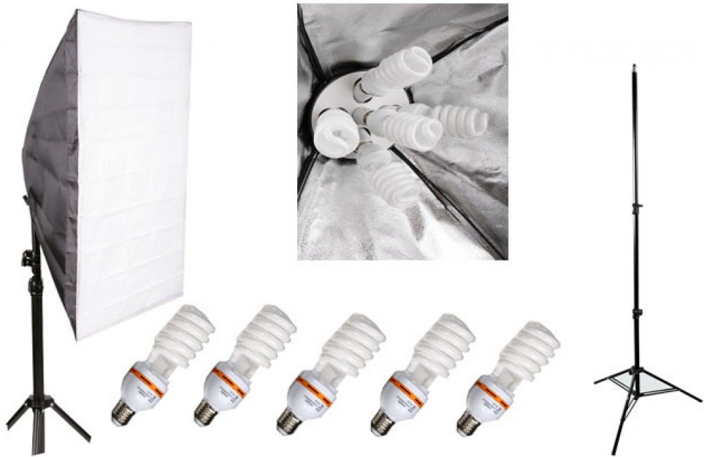Toto je nejlevnější výkoná 5 žárovková kombinace na českém trhu. Součástí je samotný softbox s držákem 5 žárovek s paticí E27 viz.foto.