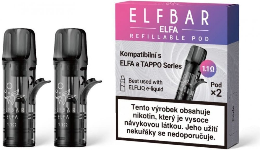 Obsah balení: 2x plnitelný pod ELF BAR ELFA kompatibilní se zařízením ELF BAR ELFA a LOST MARY TAPPO