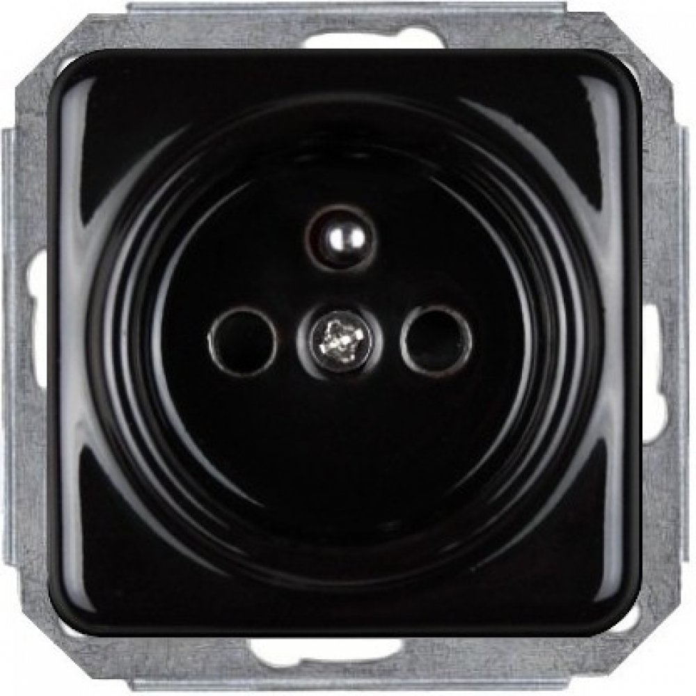 Keramická zásuvka Retro Keramik Elhard KV2100B vašemu interiéru vznešenou eleganci a pocit dávných časů. Zapuštěná montáž, šroubové svorky. Vyrobená z glazurované keramiky v černé barvě s lesklým povrchem. Bez rámečku.