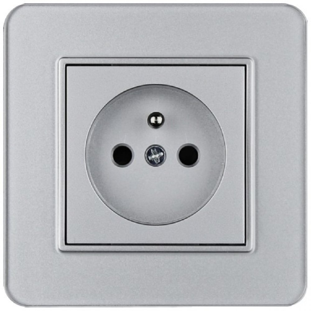 Kompletní zásuvka 230V/16A Elhard ROYAL GLASS ve stříbrné barvě s montáží do elektroinstalační krabice 68. Součástí balení je stříbrný skleněný rámeček ROYAL GLASS o rozměrech 86x86mm.