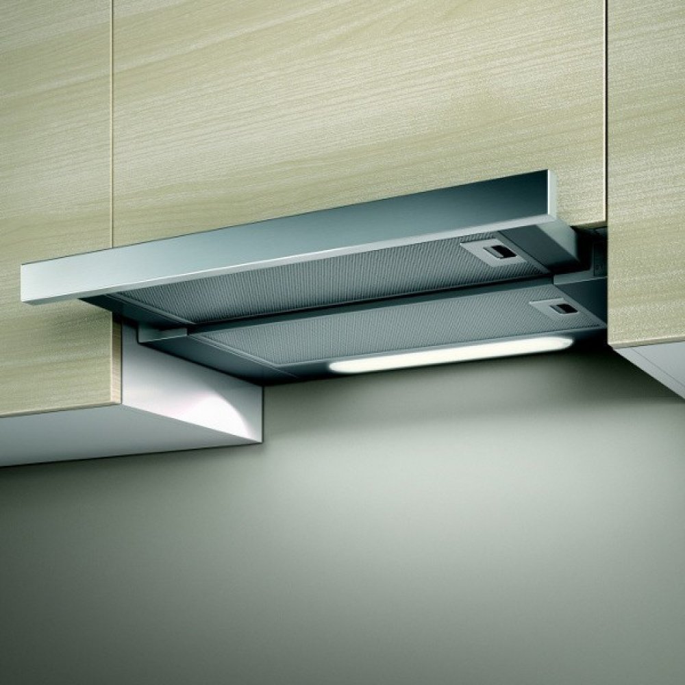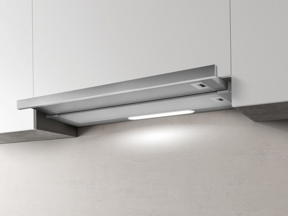 Díky výsuvnému provedení se digestoř zapne pouze tehdy, když ji potřebujete. Osvětlení zajišťují dvě úsporné LED diody s teplým světlem, které zlepší viditelnost při vaření. Digestoř je vhodná pro odtah i recirkulaci a je osazena hliníkovým tukovým filtrem.