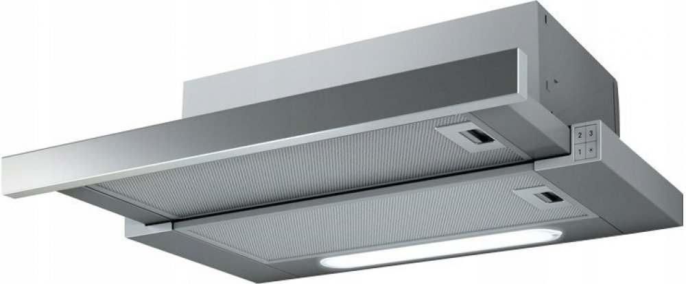 400 m3/hod. 70 dB Elica E 121 W výsuvné ocel 60 cm 120 mm mechanické 3 28 cm 18 cm stříbrné
