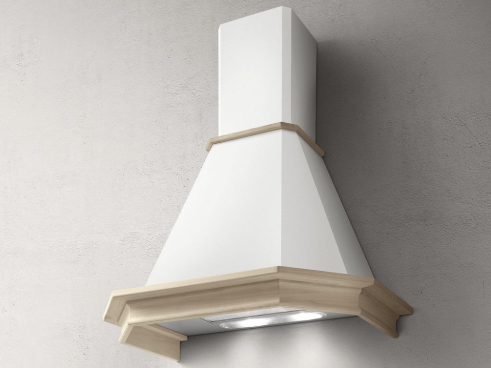 je komínový odsavač par (digestoř). Rustikální odsavač par je vyroben z bíle lakovaného kovu s dekorativními prvky z přírodního nebarveného dřeva. Odsavač par s výkonem 290-435 m3/h, a hlučností 56-65 db(A).