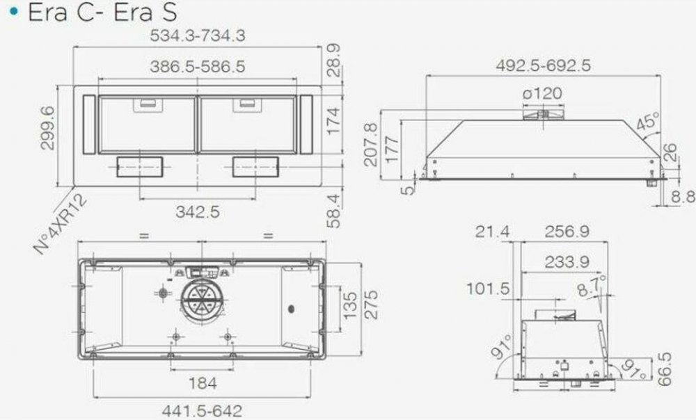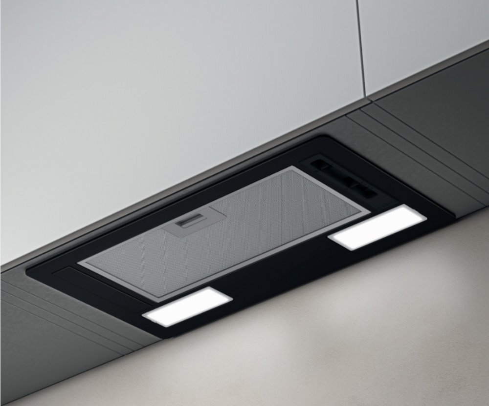 . ELICA ERA je vyroben z černého lakovaného kovu. Odsavač par s výkonem 125-224 m3/h a hlučností 45-54 db (A).