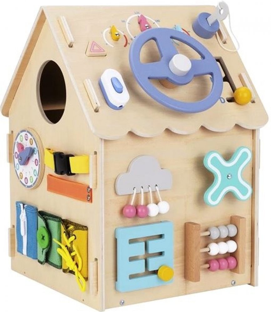 Dřevěný activity board domeček eliNeli kombinuje Montessori principy s promyšlenými hracími prvky, které dětem od 18 měsíců přinášejí smysluplnou zábavu a současně rozvíjí jejich dovednosti. Domeček rozvíjí jemnou motoriku, koordinaci pohybu, logické myšlení, soustředění i kreativitu. Jeho součástí je zelený plastový telefon s 12 funkčními tlačítky nabízejícími písničky, zvuky, říkanky a výuku ang...