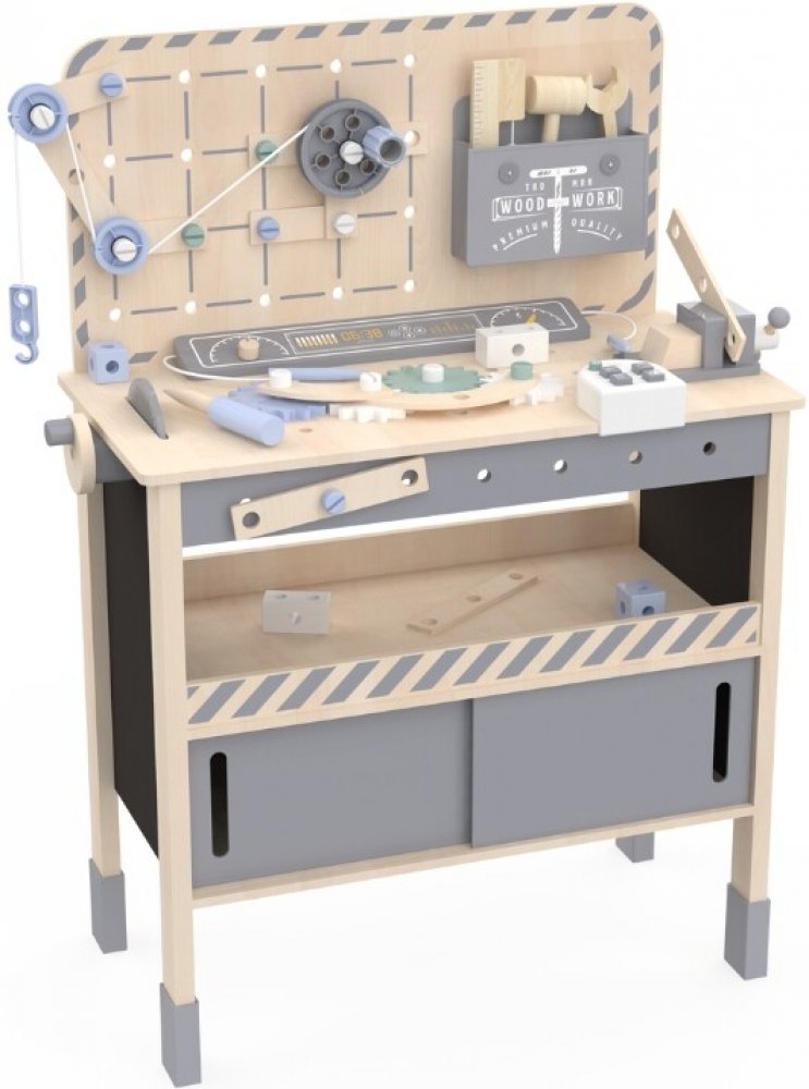 Velký dětský ponk XXLProstor pro kreativituVelký dětský ponk nabízí dostatek prostoru pro všechny malé kutily. Jeho velká pracovní plocha umožňuje dětem rozvíjet svou kreativitu a manuální zručnost.Navíc je vybaven jeřábem, který děti zaujme na první pohled. Ponk s příslušenstvím je ideální nástroj pro rozvoj jemné motoriky a koordinace očí a rukou.Bohaté příslušenstvíRozvoj dovednostíPonk je dodáván se širokou škálou příslušenství, včetně nářadí, šroubů a destiček. To umožňuje dětem experimentovat a učit se novým dovednostem.Ponk pomáhá dětem rozvíjet různé dovednosti, jako je jemná a hrubá motorika, logické myšlení a kreativita. To je klíčové pro jejich celkový rozvoj.Bezpečné a kvalitní materiályIdeální pro různé věkové kategorieVyroben z kvalitních materiálů, jako je MDF, plast, překližka a přírodní dřevo. Tyto materiály zajišťují dlouhou životnost a bezpečnost při hraní.Hračka je navržena pro děti od 3 let, je ideální pro různé věkové skupiny. Děti mohou začít s jednoduchými úkoly a postupně se učit složitějším projektům.Technické parametryRozměry60 x 30 x 86 cmRozměry balení10,8 x 66 x 56 cmHmotnost8,3 kgHmotnost balení8,6 kgMateriálborové dřevo, dřevo Schima, překližka, MDF, plast, plstěná tkaninaCertifikaceCE, EN-71,2,3Věkod 3 let, 36m+Výhody produktu Rozvoj dovedností a podpora růstuDřevěný dětský ponk XXL podporuje rozvoj jemné i hrubé motoriky, logického myšlení a dovedností. Bohaté příslušenství, jeřáb, nářadí, šrouby i ozubená kola dávají dětem prostor zkoumat, stavět, opravovat a zkoušet nové situace.Hra na kutily, opraváře nebo jeřábníky rozvíjí představivost, trpělivost i schopnost soustředění. Děti si zároveň užijí společný čas s rodiči, učí se spolupracovat a přirozeně získávají nové dovednosti při každodenním hraní. Výhody produktu Velká pracovní plocha Dostatek prostoru pro kreativní projekty a rozvoj manuální zručnosti. Bohaté příslušenství Obsahuje nářadí, šrouby a destičky pro rozvoj dovedností. Kvalitní materiály Vyrobeno z MDF, plastu, překližky a přírodního dřeva pro bezpečnost a odolnost. Vhodné pro různé věkové kategorie Navrženo pro děti od 3 let, podporuje růst a rozvoj. Podpora učení Rozvíjí jemnou a hrubou motoriku, logické myšlení a kreativitu. My v ELIS DESIGN jsme sami rodiče dětí různého věku a záleží nám na tom, s čím si hrají. Proto i pro vaše děti vytváříme a vybíráme smysluplné hračky z kvalitních, nejlépe přírodních, materiálů, inspirované montessori, které nejen zabaví, ale i rozvíjí. Je ponk vhodný pro děti mladší 3 let? Ponk je doporučen pro děti od 3 let kvůli malým částem. Jaké materiály jsou použity? Ponk je vyroben z MDF, plastu, překližky a přírodního dřeva. Je montáž složitá? Montáž je jednoduchá a zvládne ji každý dospělý. Rodičovský tahák pro chytré hraní a inspiraci z montessori pedagogiky https://play.elineli.eu/