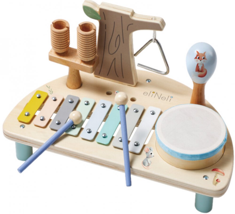 Design a barvyPastelové odstíny a lesní motivHudební stolek pro děti s motivem lesa zaujme svým přírodním designem s jemnými pastelovými barvami. Lesní motiv se stromem a liškou dodává stolečku kouzlo, které osloví každé dítě.Pastelové barvy nejenže přitahují pozornost, ale také vytvářejí příjemnou atmosféru v dětském pokoji. Díky neutrálnímu barevnému provedení je stolek vhodný pro holčičky i kluky.Hudební nástrojePět oblíbených nástrojůStoleček obsahuje pět základních hudebních nástrojů, které děti seznámí s různými zvuky a technikami hry. Děti mohou uspořádat malý koncert pro své panenky, plyšáky nebo rodiče.Hudební nástroje na jednom místě umožňují dětem rozvíjet hudební dovednosti a probouzet lásku k hudbě. Hra na nástroje stimuluje smysly a podporuje kreativitu.Materiály a bezpečnostPřírodní a bezpečné materiályHudební stolek je vyroben z přírodních materiálů, jako je bukové dřevo a překližka. Použité laky a barvy jsou vodou ředitelné a netoxické, což zajišťuje bezpečnost pro děti.Výrobek splňuje vysoké bezpečnostní standardy a prošel přísnými německými testy TÜV Rheinland. Rodiče mohou být klidní, že si jejich děti hrají s bezpečnou hračkou.Rozvoj dovednostíPodpora motoriky a kreativityHra s hudebním stolečkem pomáhá dětem rozvíjet jemnou motoriku a koordinaci očí a rukou. Děti se učí logickému myšlení a rozvíjejí svou fantazii.Stoleček podporuje sluchové vnímání a probouzí lásku k hudbě. Děti se učí hrát role a organizovat své vlastní malé koncerty, což posiluje jejich sebevědomí.Technické parametryDetailní specifikaceRozměr:16,5 x 25 x 35 cmRozměr balení:21 x 8,8 x 35,7 cmHmotnost:1,2 kgMateriál:bukové dřevo, překližka, kovCertifikáty:CE, EN71-1,2,3Doporučený věk:od 2 let, 24m+Výhody produktuProč si vybrat tento stolekSoučástí je sada pěti oblíbených hudebních nástrojů, které přinášejí dětem spoustu zábavy. Hra u stolečku podporuje rozvoj jemné motoriky, koordinace, logického myšlení, fantazie a sluchového vnímání.Stoleček je vyroben z přírodního dřeva. Jemné pastelové a neutrální barvy se hodí pro holčičky i kluky a krásné lesní motivy s roztomilou liškou dodávají hračce kouzlo. Výhody produktu Ekologické materiály Vyrobeno z přírodních materiálů, které jsou šetrné k životnímu prostředí. Bezpečnost na prvním místě Splňuje přísné bezpečnostní normy, což zajišťuje bezpečnou hru pro děti. Podpora kreativity Děti mohou rozvíjet svou fantazii a hudební dovednosti. Univerzální design Neutrální barvy a lesní motiv osloví jak holčičky, tak kluky. Rozvoj motoriky Podporuje jemnou motoriku a koordinaci očí a rukou. Všestranné využití Obsahuje pět oblíbených hudebních nástrojů pro různé hudební aktivity. My v ELIS DESIGN jsme sami rodiče dětí různého věku a záleží nám na tom, s čím si hrají. Proto i pro vaše děti vytváříme a vybíráme smysluplné hračky z kvalitních, nejlépe přírodních, materiálů, inspirované montessori, které nejen zabaví, ale i rozvíjí. Je stolek vhodný pro děti mladší dvou let? Stolek je doporučen pro děti od 2 let, ale vždy pod dohledem dospělé osoby. Jaké materiály jsou použity při výrobě? Stolek je vyroben z bukového dřeva, překližky a kovu. Jsou použité barvy bezpečné pro děti? Ano, barvy jsou vodou ředitelné a netoxické, vhodné pro děti. Jaké certifikáty má tento produkt? Produkt má certifikáty CE, 2009/48/ES, TÜV Rheinland, EN 71-1, 2 a 3 a prošel přísnými německými testy TÜV Rheinland. Bezpečnost a kvalita Naše hračky jsou z bezpečných a kvalitních materiálů eliPlay Rodičovský tahák pro chytré hraní Udržitelný přístup Získali jsme ocenění Udržitelný e-shop Blog Průvodce výběřem a DIY nápady na tvoření s dětmi Rodičovský tahák pro chytré hraní a inspiraci z montessori pedagogiky https://play.elineli.eu/ Více o produktech eliNeli https://www.elineli.eu/cz/